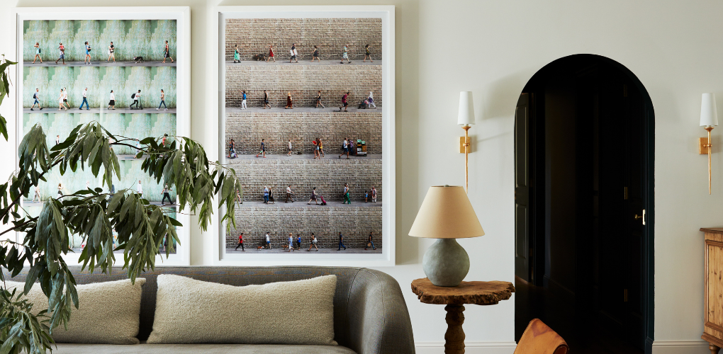 People choose art for their living rooms because it creates an atmosphere and adds personality to the space where they gather, relax, and entertain. And the most important advice we give art buyers is to buy what you love. An emotional connection matters more than any design rule, but loving an artwork and knowing it will work in your space aren’t mutually exclusive.